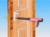 •破除暗锁锁芯: 将圆形冲击杆装入枪筒,对准锁芯位置,垂直成 90 度角,按步骤 4 按压击发。根据锁具的不同情况,可按步骤 5 进行多次破拆。